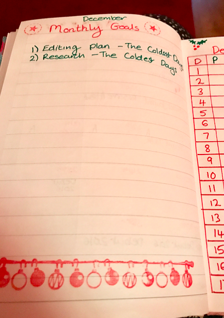 Most people using bullet journals tend to include monthly goals. Mine are looking slightly sparse this month as I know I'm not going to get much writing done in the run up to Christmas.